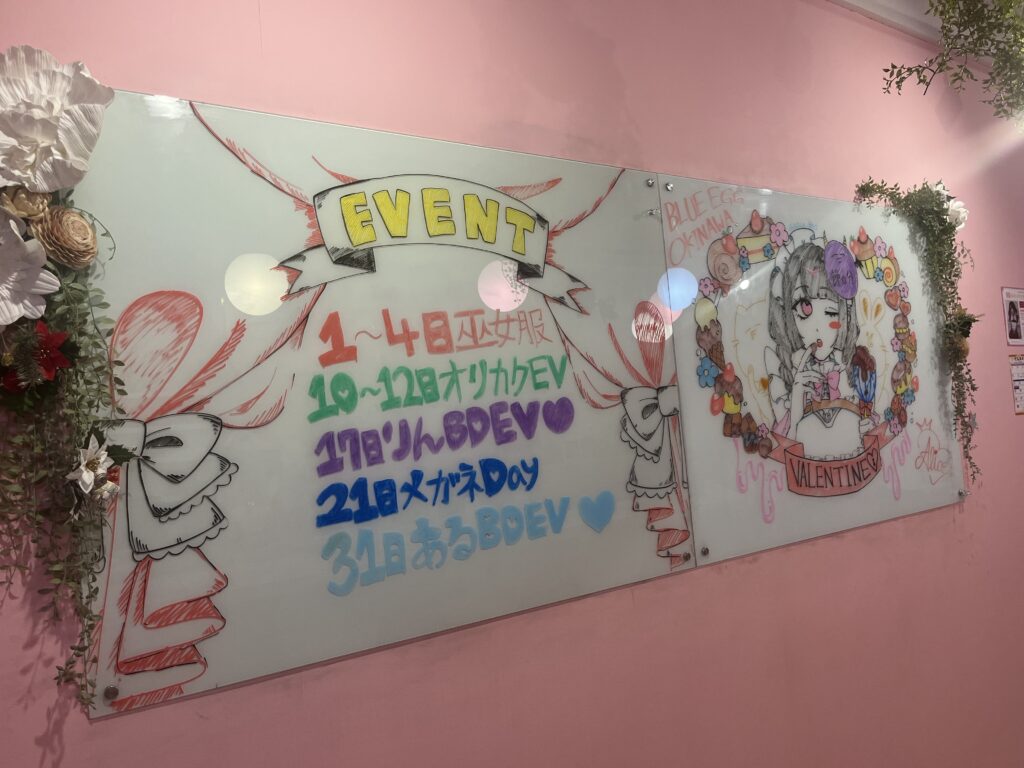 そんな素朴な疑問をメイドさんにぶつけてみると、笑顔で答えてくれました。 「『BLUE EGG』は幸せを運ぶ青い卵。お屋敷(店内)は、ご主人様たちがほっと落ち着けるように、温かいピンクで包み込んでいるんです。このギャップも私たちのチャームポイントなんですよ」